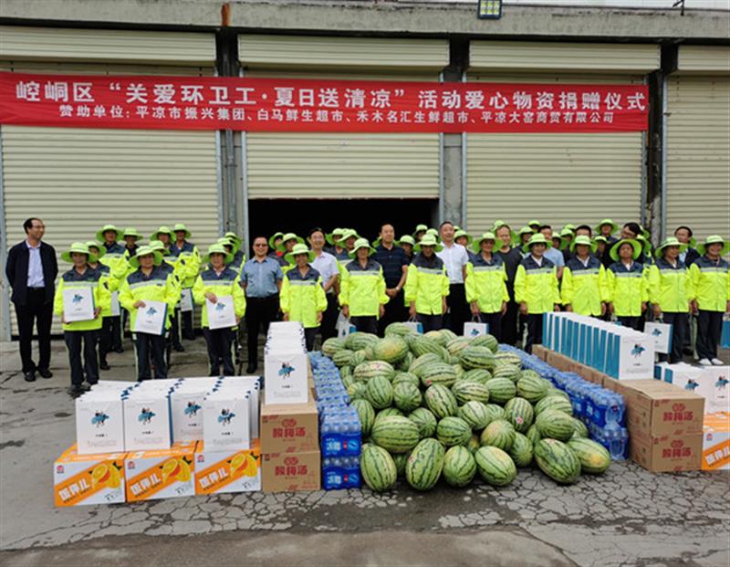 為了積極響應(yīng)區(qū)委、區(qū)政府發(fā)出的以“清涼度盛夏,安康伴我行”為主題的“夏日送清涼·真情暖人心”活動的號召,在區(qū)工商聯(lián)的組織下,平?jīng)鍪姓衽d集團(tuán)于2020年7月18日下午,參加了在崆峒區(qū)環(huán)衛(wèi)處院內(nèi)舉行的“夏日送清涼·真情暖人心”活動物資捐贈儀式,集團(tuán)副董事長鄭龍參加了本次活動,并在活動儀式上代表捐贈企業(yè)的所有同仁發(fā)表了講話。